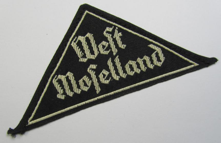 Neat, 'HJ' ('Hitlerjugend') ie. 'BDM' ('Bund Deutscher Mädel') district-triangle (ie. 'Gebietsdreieck') entitled: 'West Moselland'