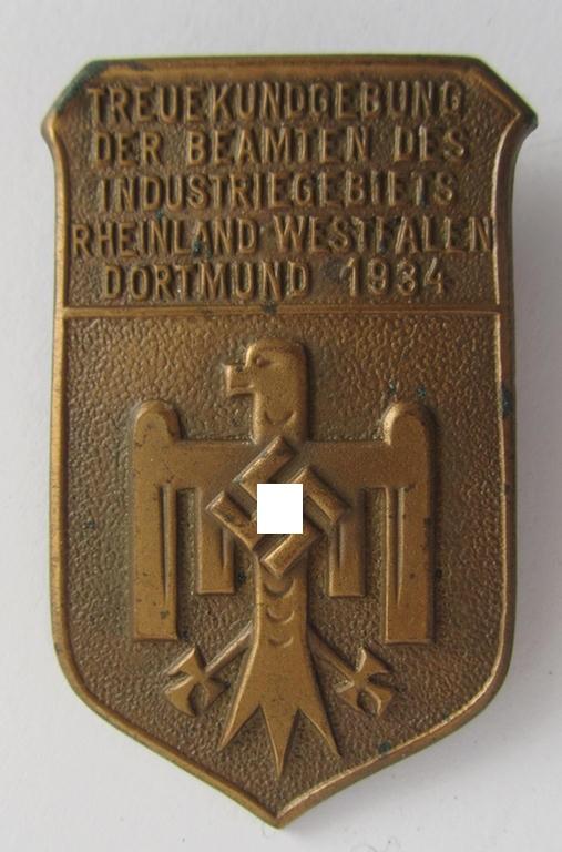 Attractive, DAF- (ie. 'Deutsches Arbeitsfront') related day-badge (ie. 'tinnie'), as was issued to commemorate the: 'Treuekundgebung der Beambten des Industriegebiets Rheinland-Westfalen 1934'