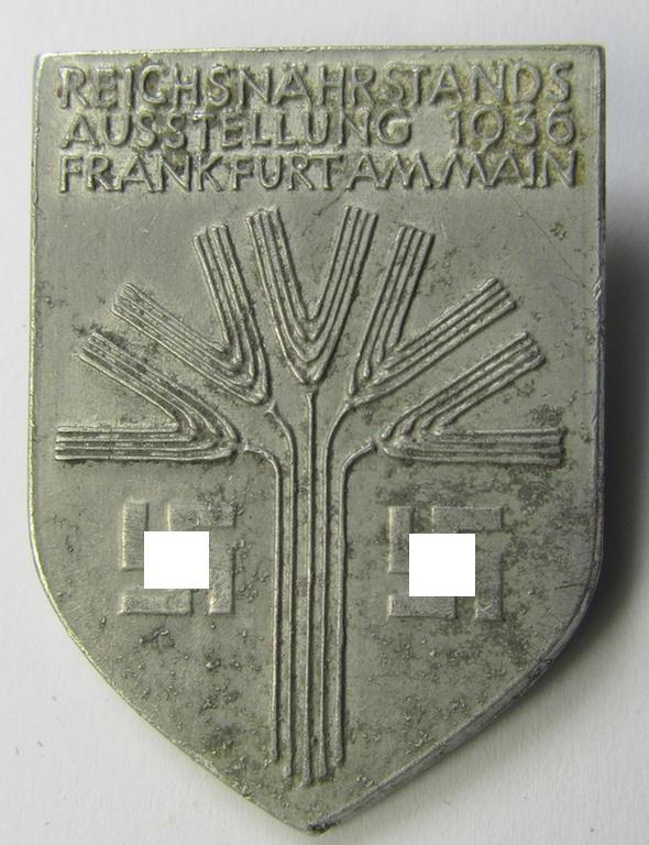 Aluminium-based, 'Reichsnährstand'- (ie. 'RNSt.'-) related day-badge (ie. 'tinnie'), as was issued to commemorate an: 'RNSt.'-gathering ie. show entitled: 'Reichnährstands-Austellung 1936 - Frankfurt am Main'