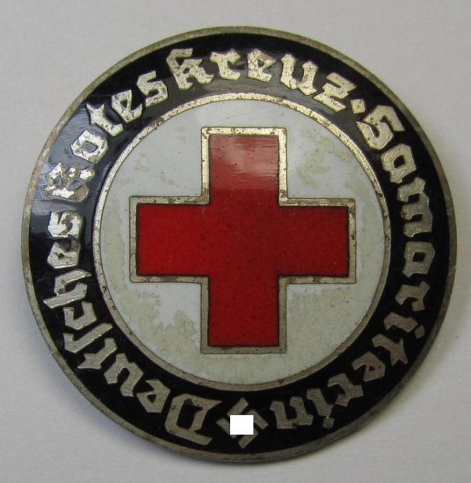 DRK (ie. 'Deutsches Rotes Kreuz' or German Red Cross) so-called: nurses'-badge entitled: 'Samariterin' being an attractive maker- and/or patent-pending- (ie. 'Ges.Gesch.'-) marked example