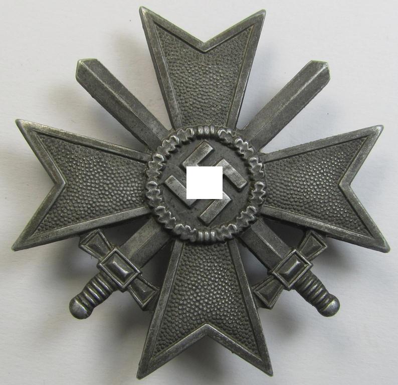 'Kriegsverdienstkreuz 1. Klasse mit Schwerter' (being a maker- ie. '62'- (ie. by: 'Kerbach & Oesterhelt'-) marked specimen that is executed in silverish-grey-coloured and/or (typical) zinc-based metal (ie. 'Feinzink')