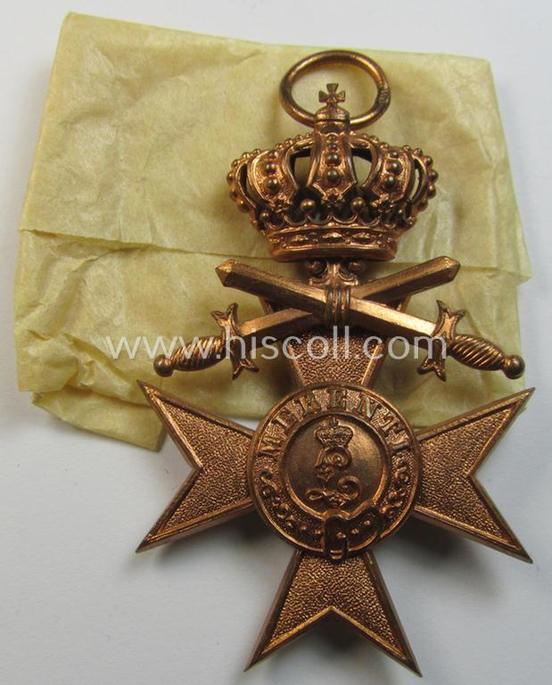Attractive - and simply never used! - (pre)WWI-period: 'Bayern Militär-Verdienstkreuz 3. Klasse mit der Krone u. Schwertern' being a very nicely preserved example that came still packed in its piece of thin-shaped 'wrapping-paper' as found