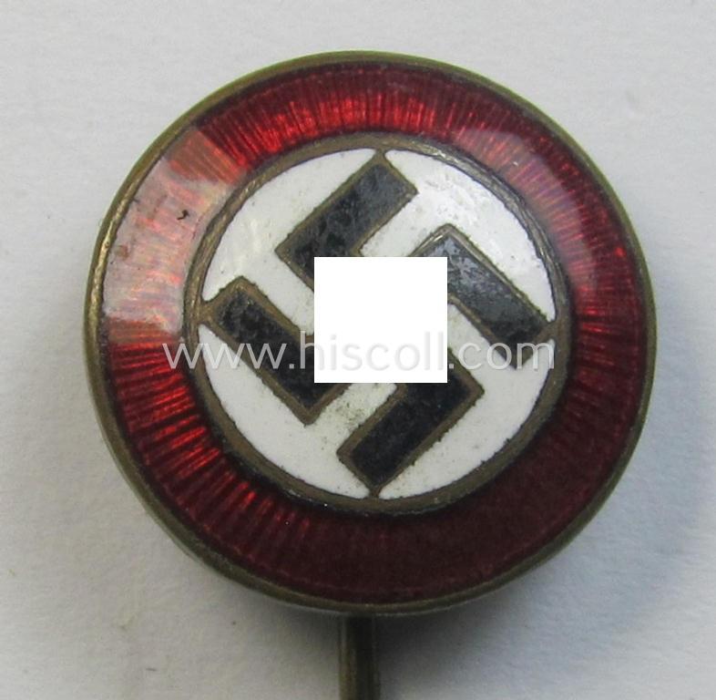 Superb - darker-red-coloured and very nicely preserved! - so-called: 'N.S.D.A.P.'-supporter-pin- ie. party-badge (or: 'Parteiabzeichen') being a smaller-sized specimen that it totally void of a makers'-designation