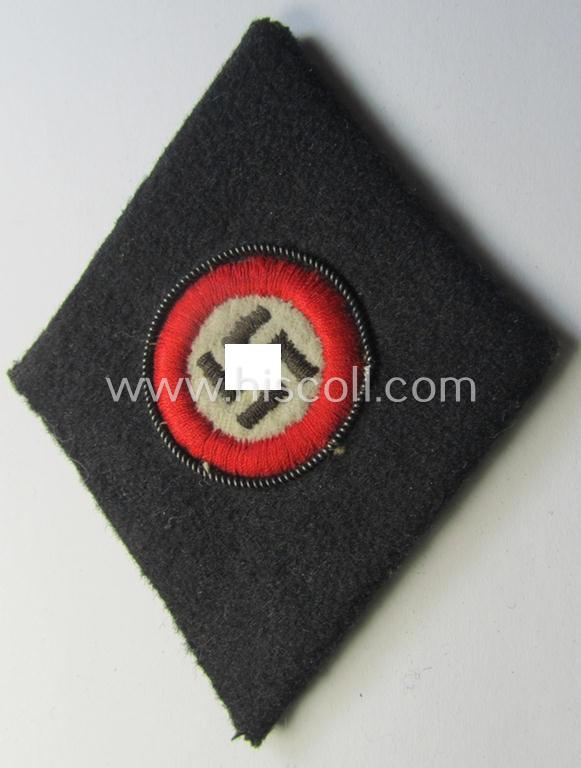 Attractive - and truly rarely encountered! - neatly hand-embroidered, 'N.S.D.A.P.'-related sleeve-diamond (ie.: 'Ärmelraute') showing a: 'Parteiabzeichen' as was specifically worn by (early-period!): 'N.S.D.A.P.-Stabsleiter'