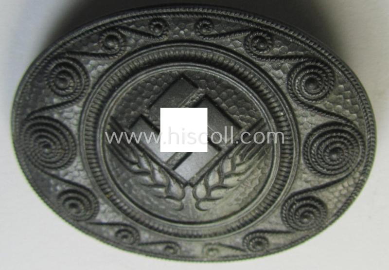 Neat, 'Reichsarbeitsdienst der weiblichen Jugend' (or: RADwJ ie.: Womens' Labour Service) so-called: 'Erinnerungsbrosche' (or: commemorative-brooch) being a maker- (ie. 'An.G.'-) marked example as was executed in greyish-toned, zinc-based meta...