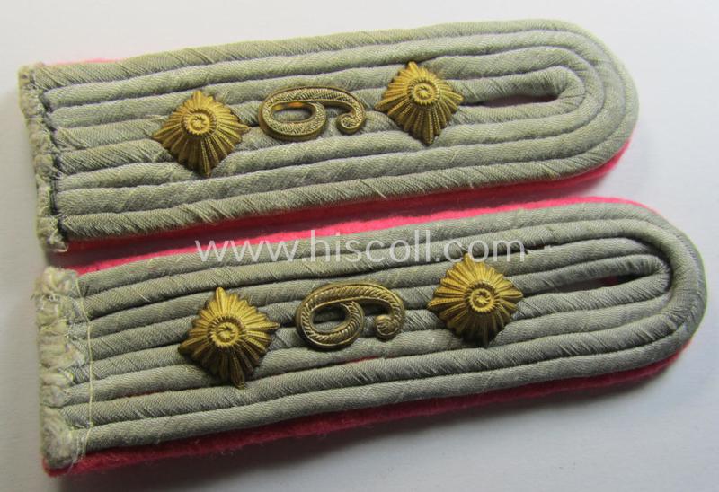 Superb - and fully matching! - pair of neatly 'cyphered' WH (Heeres) officers'-type shoulderboards as piped in the bright-pink- (ie. 'rosaroter'-) coloured branchcolour as was intended for a: 'Hauptmann u. Mitglied der 6. Panzer-Division'