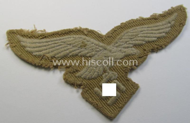Superb - clearly used and actually very scarcely found! - WH (Luftwaffe) 'tropical'-issued- (ie. DAK or 'Deutsches Afrika Korps'-related) EM- ie. NCO-type breasteagle as was specifically intended for usage on the tropical-tunic