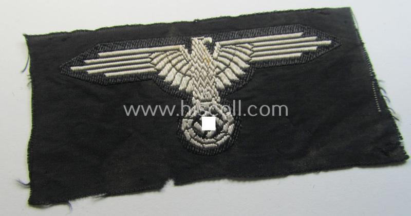 Attractive, mid- (ie. later-war-) pattern, 'SS' (ie. 'Waffen-SS') so-called: 'BeVo-weave-style', enlisted-mens'- ie. NCO-pattern arm-eagle (ie. 'Ärmeladler für Mannschaften u. Unterführer der Waffen-SS')