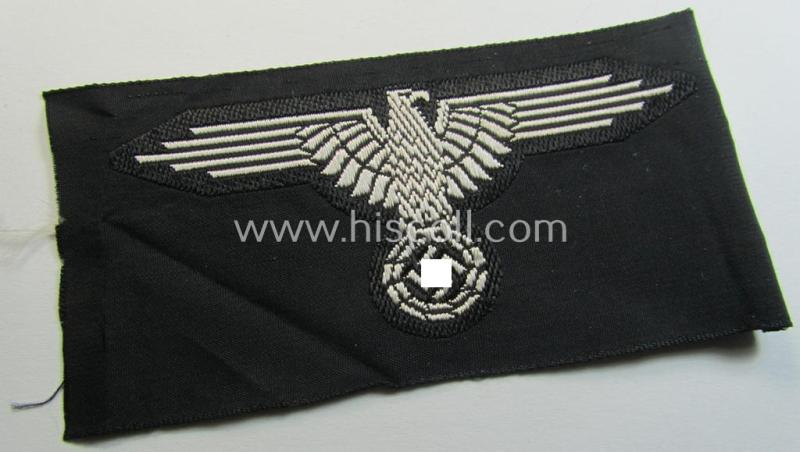 Superb, mid- (ie. later-war-) pattern, 'SS' (ie. 'Waffen-SS') so-called: 'BeVo-weave-style', enlisted-mens'- ie. NCO-pattern arm-eagle (ie. 'Ärmeladler für Mannschaften u. Unterführer') as was intended for usage by the various Waffen-SS troo...