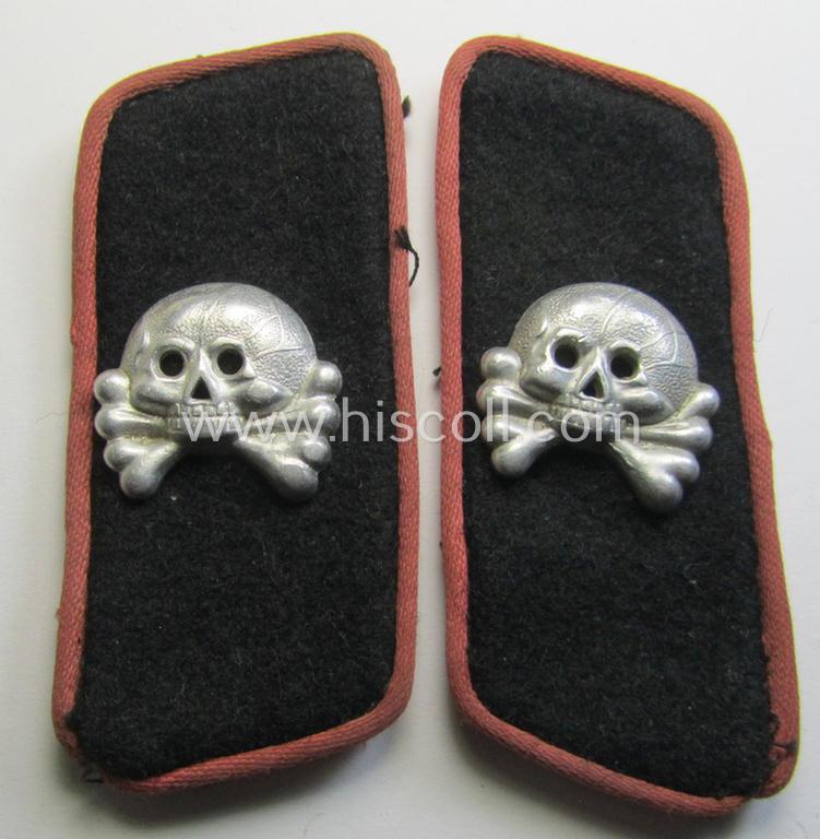 Stunning - and fully matching! - pair of mid- (ie. later-) war-period, WH (Heeres) bright-pink-piped 'Panzer'-collar-tabs (ie. 'Kragenspiegel') each having an aluminium-based and 'two-pronged' skull-device (ie. 'Totenkopf') period-attached