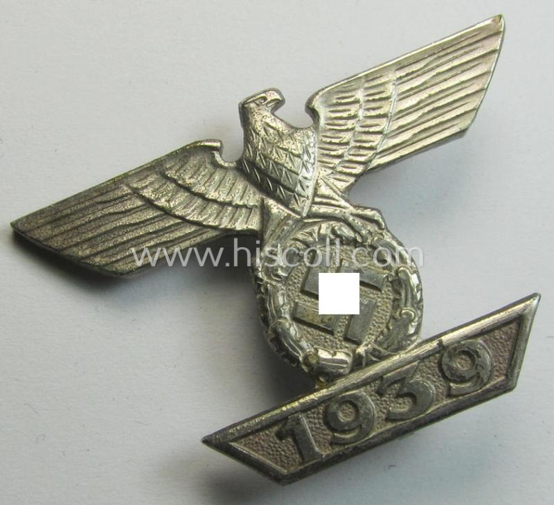 Superb, 'Wiederholungsspange zum EK I. Klasse' being a non-maker-marked example as executed in (tarnished) silver-toned 'Buntmetall' as was produced by the: 'Otto Schickle'-company and that comes in a wonderful- and untouched, condition
