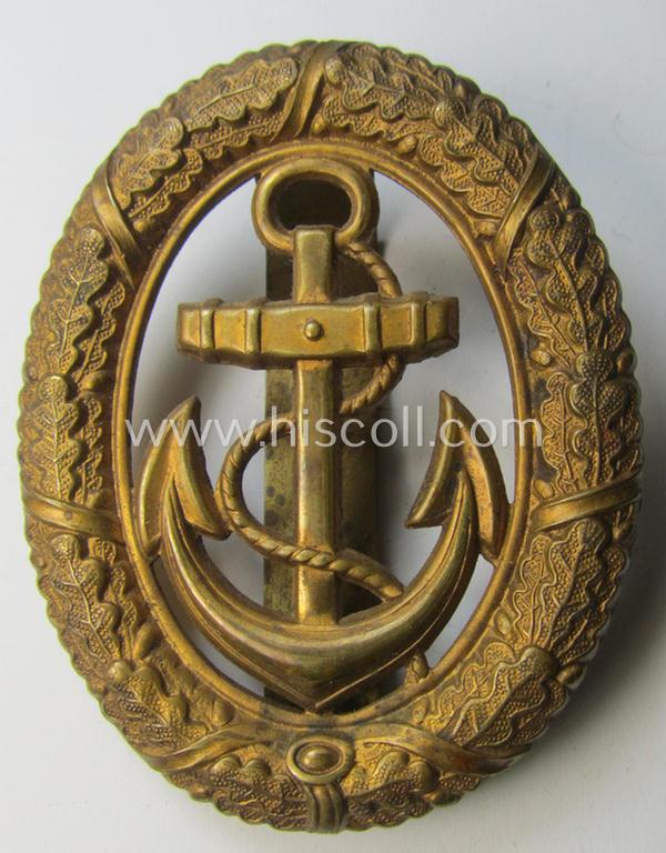 Attractive, WH (Kriegsmarine) bright-golden-toned, so-called: 'Wachoffizier-Dienstabzeichen für Offiziere der KM' (aka: 'Tagesdienstabzeichen') being a neatly maker- (ie. 'A'- or 'Assmann u. Söhne'-) marked example
