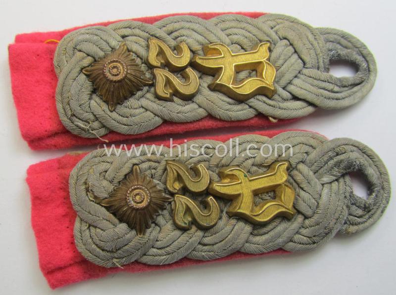 Attractive - and/or fully matching! - pair of WH (Heeres) 'cyphered' officers'-type shoulderboards as piped in the bright-pink- (ie. 'rosaroter'-) coloured branchcolour as was intended for an: 'Oberstleutnant des Panzerjäger-Abteilungs 22'