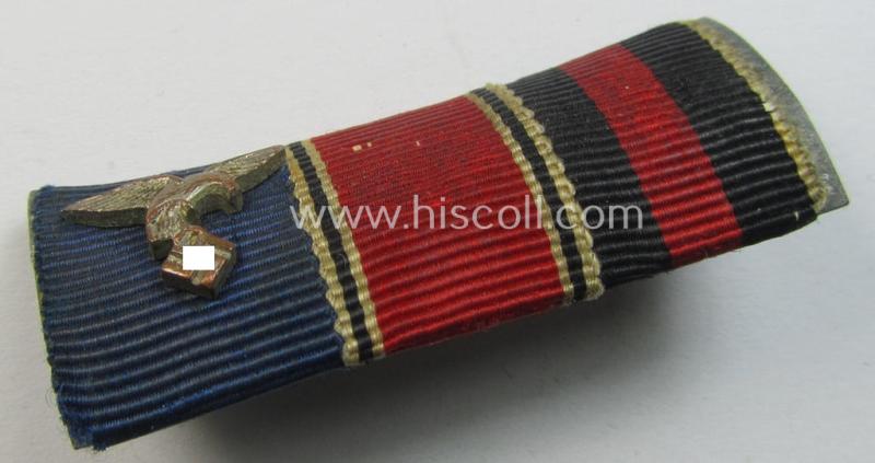 Neat, three-pieced WH (Luftwaffe) ribbon-bar (ie. 'Band- o. Feldspange') resp. showing the ribbons for a: WH (Luftwaffe) 'Dienstauszeichnung' (of the 4 th class) and an Austrian- and: Czech 'Anschluss'-medal