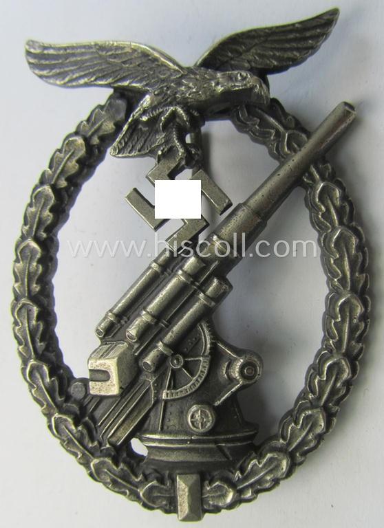 Attractive, WH (Luftwaffe) 'Flakkampfabzeichen' being a detailed 'Buntmetall'-based and (unusually seen!) non-maker-marked example as was produced by the: 'C.E. Juncker'-company and that comes as moderately worn