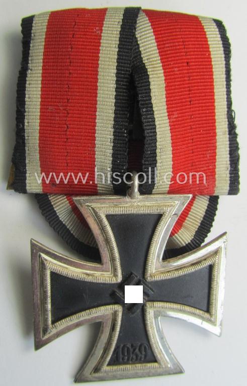 Superb, Iron Cross 2nd class (or: 'Eisernes Kreuz 2. Klasse') being a nicely preserved, maker- (ie. '100'-) marked example by the maker (ie. 'Hersteller'): 'Wächtler & Lange' and that comes period-mounted as a so-called: 'Einzelspange'