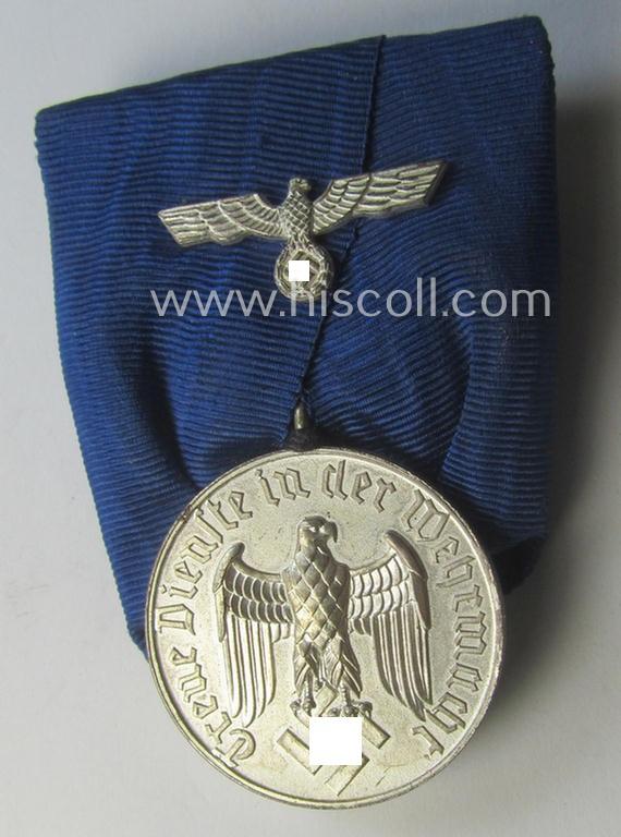 Superb, bright silver-toned WH (Heeres- o. KM) so-called: 'Einzelspange' showing a: 'WH-Dienstauszeichnung 4. Stufe' (as was intended for 4 years of loyal-service) and that shows a detailed, 'Heeres'-type-eagle-device, period-attached