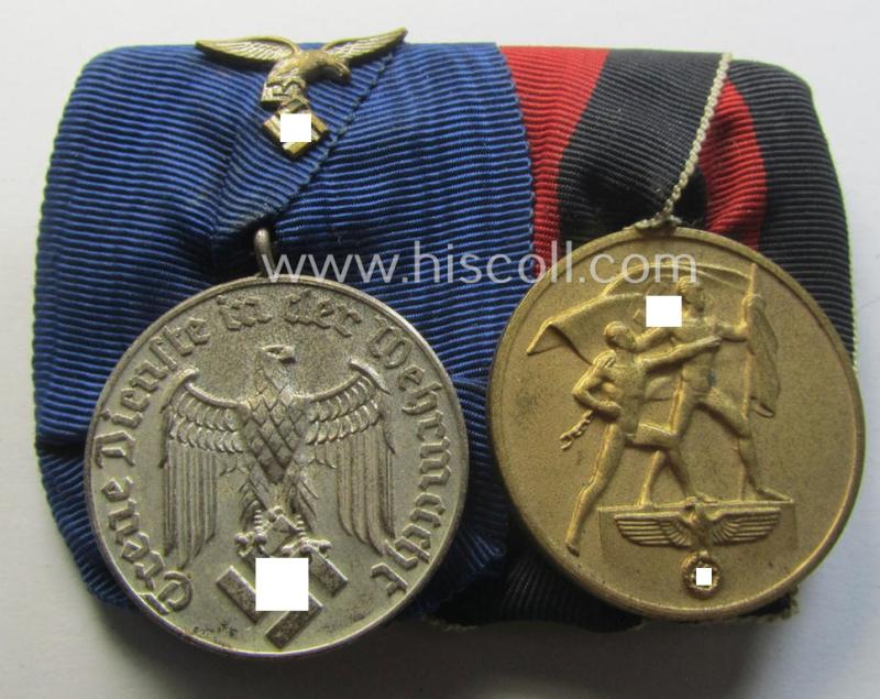 Attractive example of a two-pieced WH (Luftwaffe) medal-bar (ie.: 'Doppelspange') resp. showing a: 'WH-DA 4. Stufe' (with firmly attached, 'down-tailed' eagle-device!) and a Czech 'Anschluss'-medal