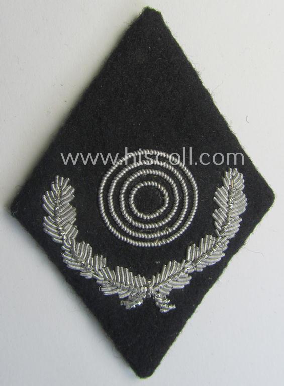 'SS'-related sleeve-diamond (ie.: 'Ärmelraute o. Schiessauszeichnung der 1. Stufe für Scharfschützen') being a very detailed- and hand-embroidered example that misses its 'RzM-Etiket'