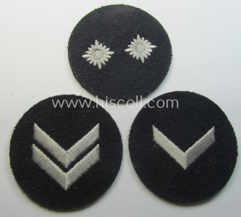Interesting - and simply never used! - 3-pieced, DJ- (ie. 'Deutsches Jungvolk in der HJ') insignia-set comprising of 3 darker-blue-toned rank-patches (ie. 'Rangzeichen') of which 2 still retain their period 'RzM'-etiket