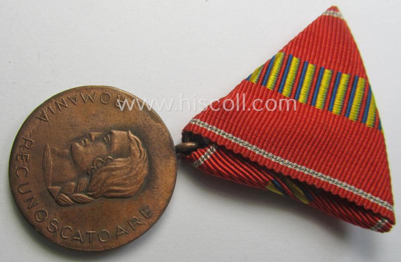 These attractive Romanian medals - which were issued in order to commemorate the crusade against communism (or: 'Kreuzzug gegen den Kommunismus') were instituted on 1st April 1942 and are often found among German medal-groups since it was liberally bestowed on Romania's allies. The award on offer here is a truly very detailed (and moderately used- and period-mounted!) example that has a neat (albeit minimally tarnished) age-patina: it came mounted onto its original (specifically folded- ie. neatly pre-confectioned!) Austrian-styled ribbon as issued. Simply a neat medal-set from one of Germany's allies that originates from a German private-household and that was with certainty awarded to a German soldier or NCO: hard to find a nicer preserved example for a more interesting price!