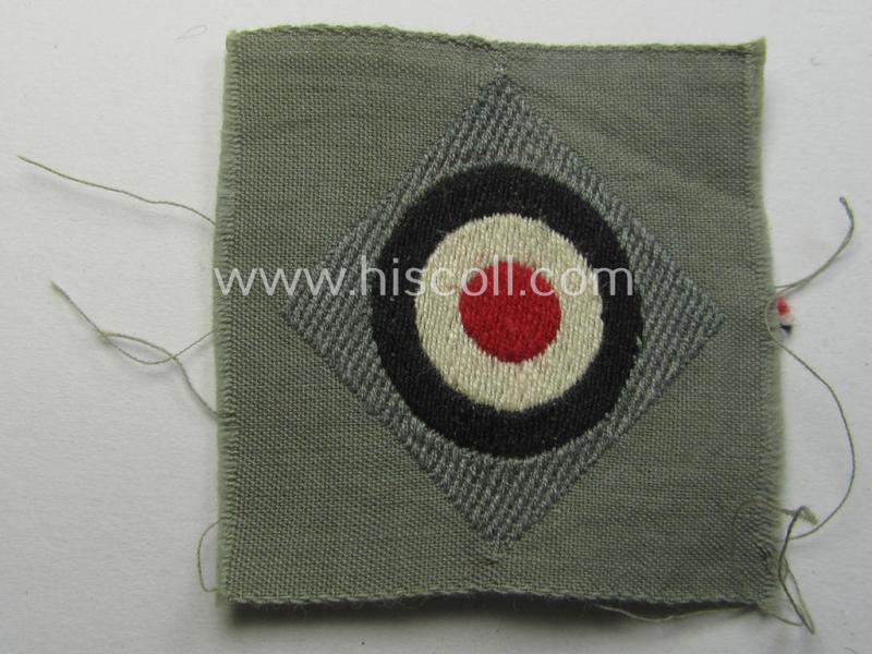 The attractive WH (Heeres) enlisted-mens'- (ie. NCO-) type cocarde (ie. 'Kokarde für Schiffchenmütze') on offer here was simply never used nor worn and comes in a non-folded- (nor confectioned), condition: it can easily be graded 'virtually mint-/unissued' but nevertheless shows some minimal age ie. staining (simply caused by decades of storage only). These early- ie. pre-war-type, WH (Heeres) 'standard'-pattern side-cap-cocardes can easily be graded as one of the more difficult to obtain cocardes of the period. I know that my asking-price is rather high but these neat (greyish-like- albeit field-grey-coloured) WH (Heeres) replacement-cocardes are hardly ever offered for sale. Simply a neat replacement-item that is very hard to find if needed!