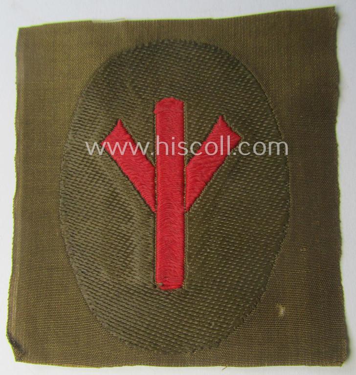 This is an attractive - and actually not that commonly encountered! - SA (ie. 'Sturmabteilungen') armbadge as executed in neat 'BeVo'-weave pattern, as was specifically intended for usage by a: 'Sanitäts-Unterführer o. Mann' (ie. 'SA-Feldscher' or: medical-orderly) and that comes in an overall very nice- (ie. simply never used- nor tunic- ie. shirt-attached-), condition. This nicely woven arm-badge is sized: 7 x 5 cms. (and is executed in bright-red-coloured linnen on a - typical SA-coloured - brownish-coloured and/or also linnen-based background). The piece was simply never folded nor trimmed and still retains its so-called: 'RzM'-etiket (as can be seen on the pictures). It just shows some minimal age ie. staining caused by decades of storage only. Simply a neat - and actually not that commonly encountered! - 'BeVo'-type, SA-related arm-patch that belonged to an: 'Sanitäts-Unterführer o. Mann' (ie. 'SA-Feldscher')!