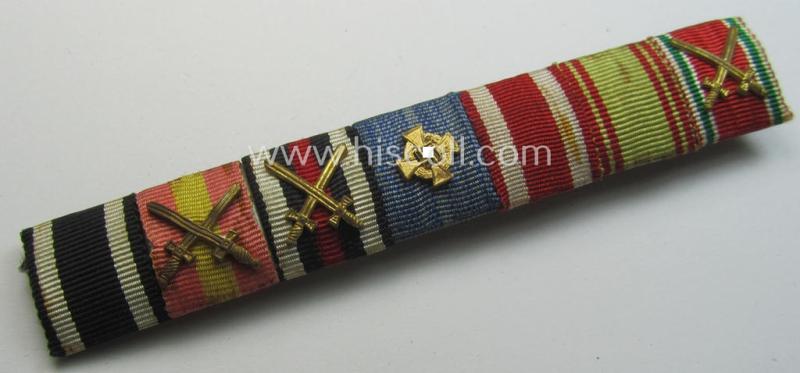 7-pieced WWI- (ie. TR- or: 'Polizei'-) related ribbon-bar (ie. 'Feld- o. Bandspange') showing various WWI-period awards amongst which a: 'Treuedienst Ehrenzeichen 1. Kl. ' with attached device