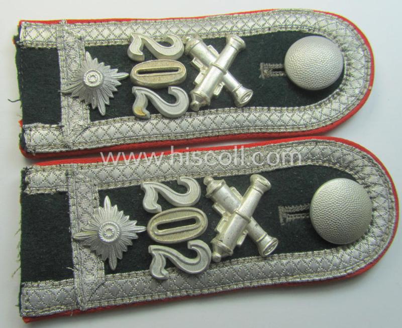 Pair of WH (Heeres) 'cyphered' (and bright-red-piped!) early-war-period- (ie. 'M36'- ie. 'M40'-type) NCO-pattern shoulderstraps: 'Feldwebel u. Waffenunteroffizier u. Mitglied des Art.-Rgts. 202'