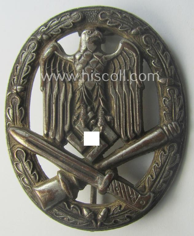 'Allgemeines Sturmabzeichen' being a non-maker-marked, so-called: 'copper-coated' & 'Buntmetall'-based so-called: 'flat-back'-pattern by a (by me) unidentified maker