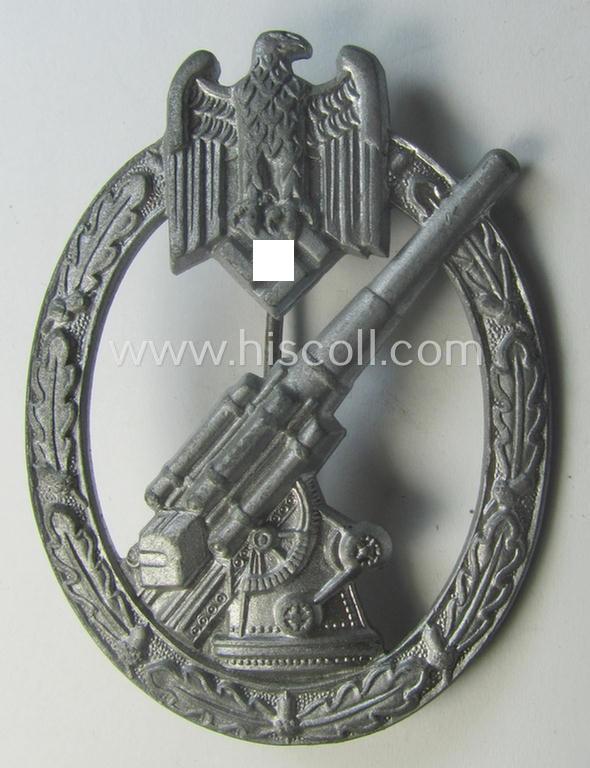 'Heeres-Flakkampf-Abzeichen' being a non-maker-marked- and/or zinc- (ie. 'Feinzink'-) based specimen of the so-called: 'pillow-crimped'-pattern (as was produced by a to date still unidentified maker)