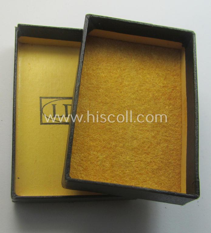 This is an attractive - quite desirable and actually scarcely encountered! - darker-blue-toned- (and typical 'generic'-styled) so-called: 'LDO'-etui ie. two-pieced box being a nicely preserved example that comes in an overall wonderful- (albeit moderately used-), condtion. The etui - that measures 6,2 x 4,2 x 1,8 cms. - shows a fully preserved (light-yellow-coloured- and/or velvet-based) 'inlay'. It shows the (black-toned) 'LDO'-designation on the back of its lid but is void of a (silver) 'LDO'-logo imprinted on its top: moreover, does it hardly show any usage nor wear and was simply very nicely preserved (as can be noticed on the pictures). These 'generic'-styled LDO-type etuis were intended to store a wide-range of TR-era awards (such as for example the: 'Verwundeten-Abzeichen in Schwarz' or: 'Westwall'-medal to mention a few). The piece is void of an additional (LDO) ink-stamp on its back (something that is more often observed). Simply a neat example of a 'generic'-styled 'LDO'-etui that is I deem accordingly priced!