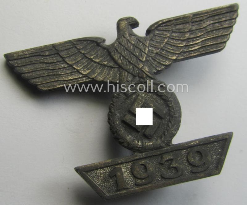 Maker- (ie. 'L/13'-) marked 'Wiederholungsspange zum EK I. Klasse' as executed in greyish-silver-toned 'Feinzink' by the: 'Paul Meybauer'-company and that comes in an overall nice- and/or fully untouched, condition