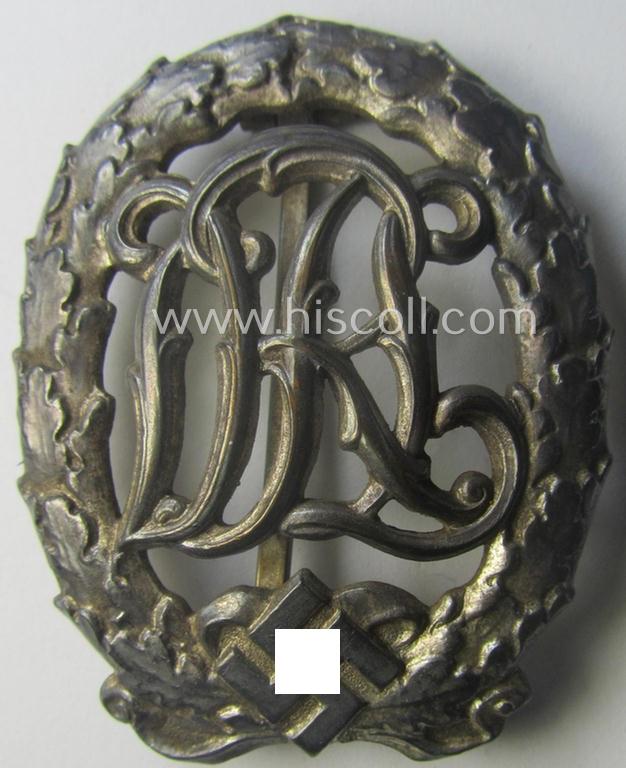 'Reichssportabzeichen DRL in Silber' (or: DRL sports'-badge in silver) being a just moderately worn- ie. used example that is nicely maker- (ie. 'Wernstein - Jena'-) marked on its back