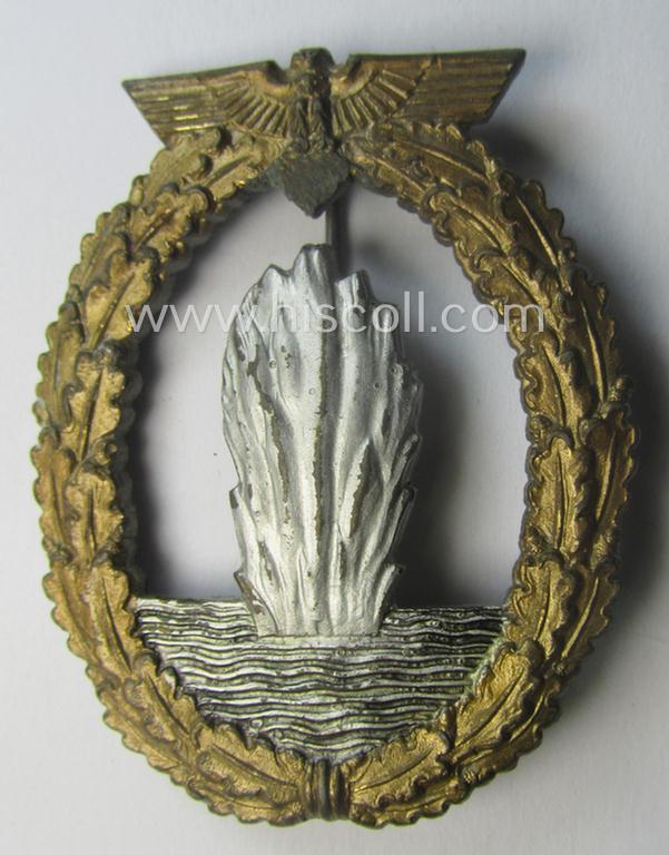 Regrettably denazified, WH (KM) 'Kriegsabzeichen für Minensuch-, U-Boot-Jagd und Sicherungs-Verbände' (being a typical maker-marked, 'Feinzink'-based example as was produced by the: 'Adolf Scholze'-company)