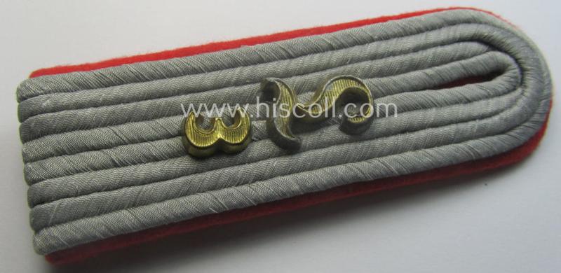 Single, WH (Heeres) neatly 'cyphered', officers'-type shoulderboard as was piped in the bright-red branchcolour as was intended for a: 'Leutnant des Artillerie-Lehr-Abts. 3'