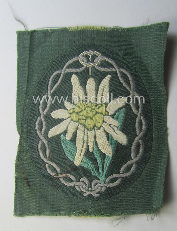 'Variant'- ie. first-pattern!, WH (Heeres) 'Gebirgsjäger'- (ie. mountain-troopers-) related arm-badge, being a desirable example as was executed in the 'BeVo'-weave pattern on a field-grey-coloured background