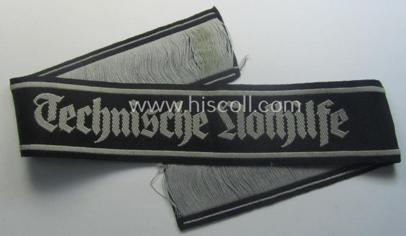 Minimally used and/or carefully tunic-removed, TeNo-cuff-title (ie. 'Ärmelstreifen') entitled: 'Technische Nothilfe' (= 'TeNo') being a full length example as was woven in the neat 'BeVo'-weave pattern