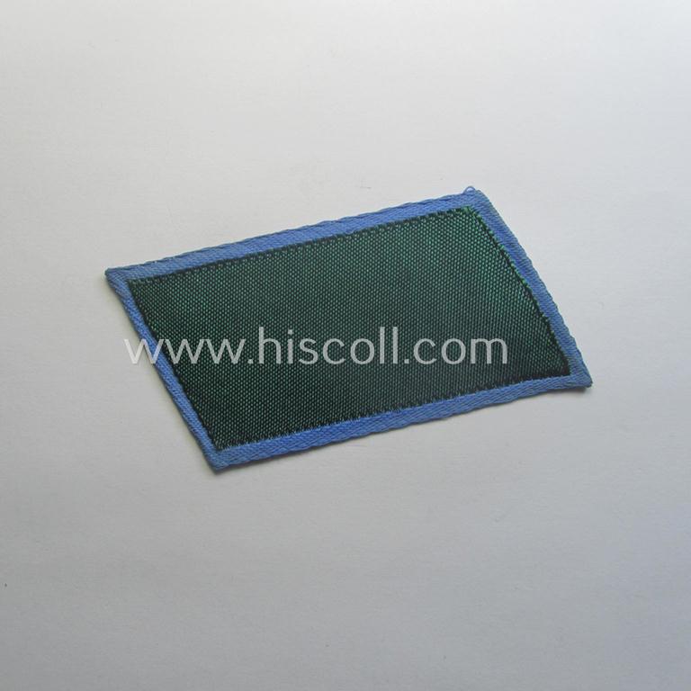 The neat - albeit regrettably single - collar-tab (ie. 'Kragenspiegel') - which is nicely and entirely executed in the so-called: 'BeVo-weave technique' - is piped in the bright-blue- (ie. 'hellblauer'-) coloured branchcolour, being the designated branchcolour as was given to the: 'Turkistanischer'- (ie. Turkistanian) volunteers serving within the 'Deutsche Wehrmacht'. The piece came in a just folded but not trimmed condition and came as 'straightly cut-off the role': it is void of the interwoven (or added), silver-grey-coloured 'NCO'-braid denoting that is was intended for a simple soldier with the rank of a: 'Soldat'. The tab was (I deem) simply never used nor tunic-attached but does show some minimal age and/or minimal staining. It should be noted that these original, 'officially German-issued' collar-tabs as entirely executed in 'BeVo'-type weave (ie. being of the German manufacture by the company of 'BeVo'!) can easily be graded 'scarce'. I deem that this attractive EM-pattern, 'Ostvölker'- ie. Turkistanian-collar-tab is accordingly priced!