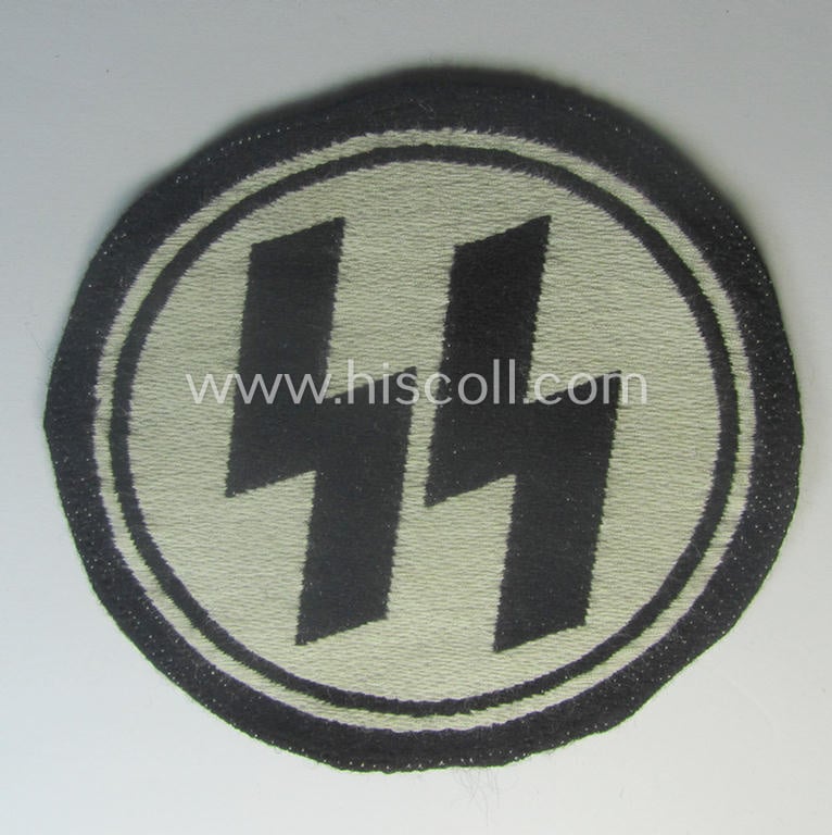 Waffen-SS sport-shirt emblem as executed in the neat 'BeVo'-weave pattern that is void of an: 'RzM'-etiket and that comes in an overall nice- (ie. moderately used- ie. tunic-attached-), condition