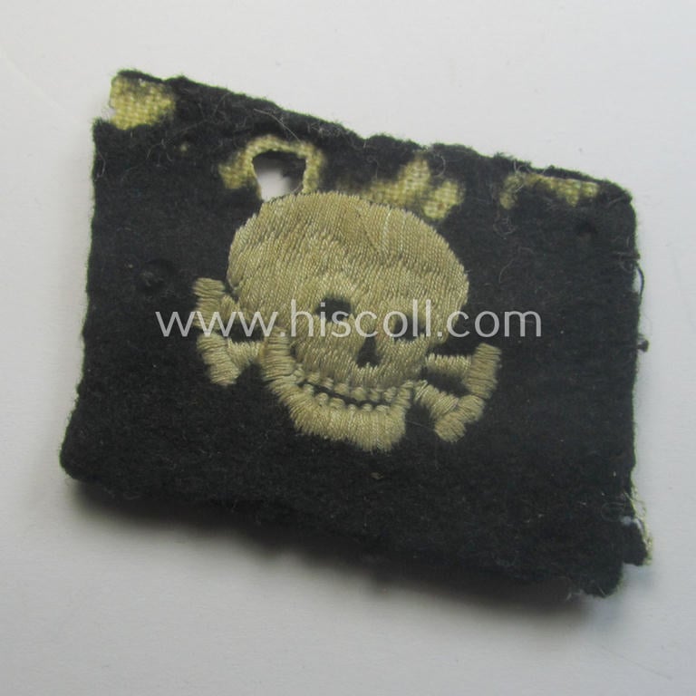 'Relic'- ie. moth-damaged example of an (I deem early- ie. mid-war-pattern) 'SS'- (ie. 'Waffen-SS'-) so-called: 'RzM-style'-collar-tab (being a so-called: 'pumpkin-head-variant') for usage within the: '3. SS-Panzer-Division' “Totenkopf”