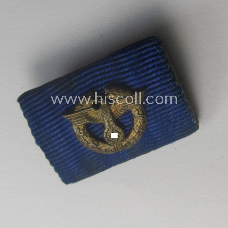 This is a truly attractive - and with certainty unusually- ie. most certainly scarcely encountered! - single-pieced, WWII-period ribbon-bar (ie. 'Feld- o. Bandspange') showing the ribbon for a (rarely seen!) so-called: 'Zollgrenzschutz-Ehrenzeichen' (or: customs loyal-service medal) that is still having its detailed 'Auflage' ie. device attached and and that comes in an overall nice- (albeit used- and/or worn, condition. The ribbon is of the regular (ie. larger) ribbon-bar-size and measures approximately 2,5 cms. (as is more often encountered). The 'Spange' comes in a nice condition overall and is of course still fully functional: it is, however, not backed with with a piece of wool but comes directly mounted onto a metal-based 'backing-plate' as more often (as can be seen on the pictures). The attached (and very detailed!) 'Auflage' ie. device shows some minimal age ie. tarnish but has nevertheless been nicely preserved. This particular example was I deem just moderately worn ie. used: it does show some usage-marks and/or minimal aging ie. wear. Simply a very attractive 'Band- o. Feldspange' that comes not that often for sale: great to decorate almost any tunic!