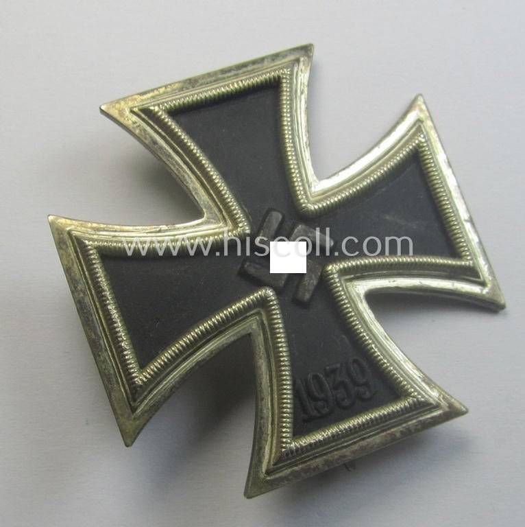 The attractive cross - which is a typical non-vaulted- (ie. non-converse-) shaped and - I deem - quite early-war-period example - has never been cleaned nor polished and retains an attractive age-patina and/or nice, pronounced detail as to be expected. This example - which is an evident and neatly maker- (ie. 'L/11'-) marked specimen as was produced by the desirable maker: 'Wilhelm Deumer' based in the town of Lüdenscheid - comes naturally firmly mounted onto its original- (and naturally unaltered and/or fully functional!) flute-shaped pin and/or typical catch (-set-up). The cross - which is a magnetic example as more often - shows a neatly 'blackened'- and/or fairly 'satin-like'- (ie. somewhat 'shiny') inner-core that retains most of its period colour. It is void of any real damage but does show some (minimal) damaged areas for example on the wings of the swastika (as can be seen on the pictures): it has, however, clearly been issued and/or worn and is still a bit stained and/or dirty (it was never cleaned though and retains only some of its 'off-factory'-applied polished sides (ie. 'hochpolierte Kanten'). I deem that I have priced this still attractive and - I deem - fairly early-period 'Eisernes Kreuz 1. Klasse' by 'Wilhelm Deumer' according to its fully untouched condition!