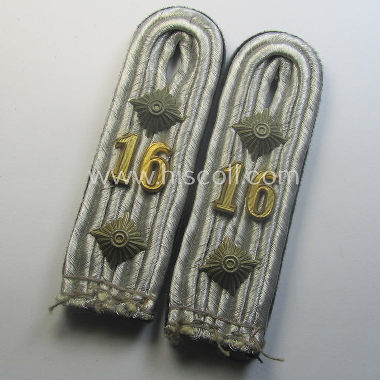Pair of WH (Heeres) neatly 'cyphered', officers'-type shoulderboards as (dual)piped in the black-coloured branchcolour: 'Hauptmann der Res. des Pionier-Batallions 16'