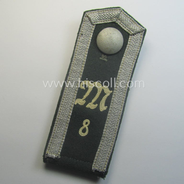 Single example of an early-period (ie. 'M36- o. M40'-pattern and pointed-styled), WH (Heeres) 'cyphered', NCO-type shoulderstrap as was intended for an: 'Uffz. des Inf.-Maschinengewehr-Abtlgs. 8'