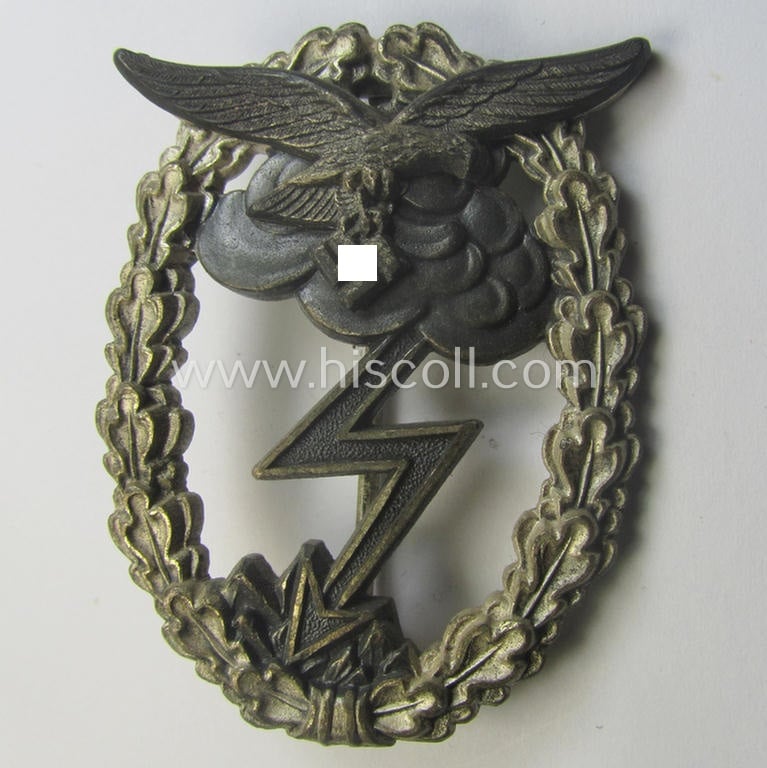 Mid- (ie. later-) war-period, zinc- (ie.'Feinzink'-) based version of a WH (Luftwaffe) 'Erdkampfabzeichen' (being a maker-marked example by the 'G.H. Osang'-company having a silvered- and 'riveted' eagle-device attached)