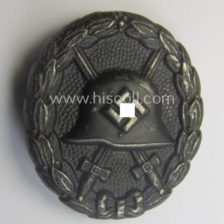 Early-pattern, black-class wound-badge (ie.: 'Verwundeten Abzeichen in Schwarz') being a detailed so-called: 'Spanish Civil-War'-version that comes in a moderately used- and/or worn, condition
