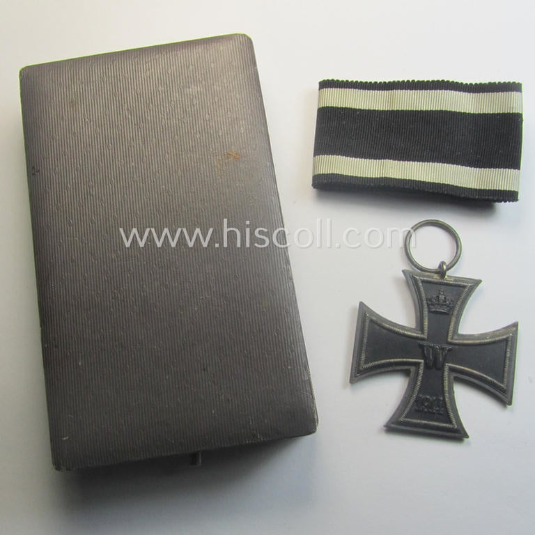 Attractive - and quite unusual! - WWI-period: 'Eisernes Kreuz II. Klasse' (or: iron cross second class) being a non-maker-marked example that comes stored in its luxuriously-styled, blue-coloured etui as issued and/or found