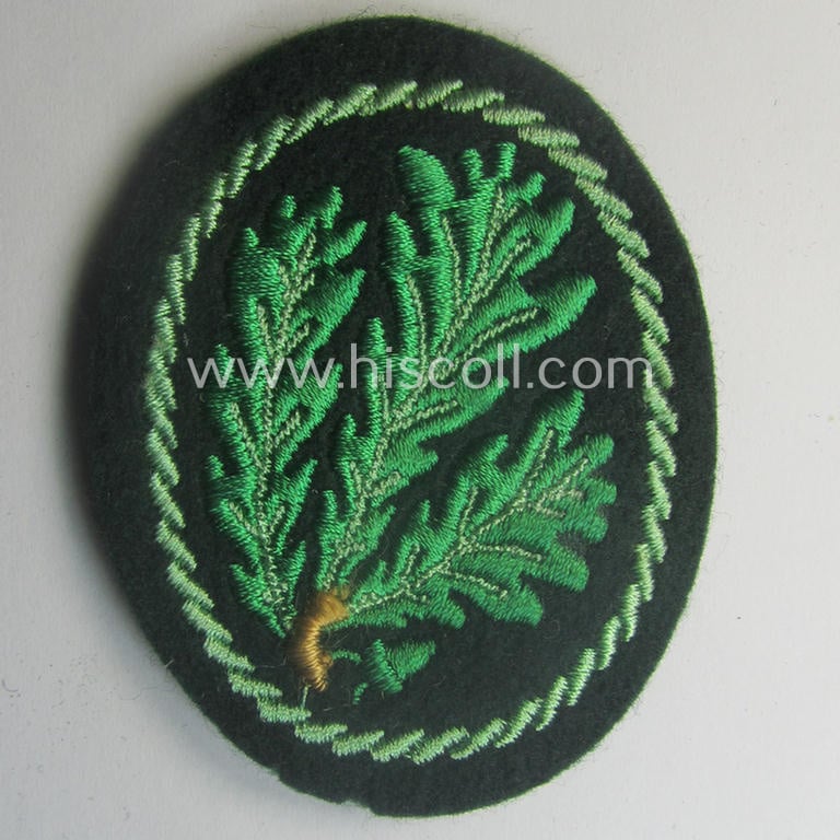 WH (Heeres) so-called: 'Jäger'-armbadge being a neatly machine-embroidered- and/or multi-coloured version as was executed on darker-green-coloured wool