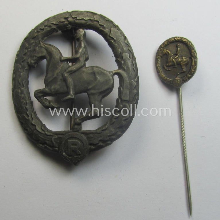 'Deutsches Reiterabzeichen der 3. Klasse (ie. 'in Bronze') being a maker- (ie. 'L.Chr. Lauer'-) marked example that comes together with its accompanying 'Halbminiatur'